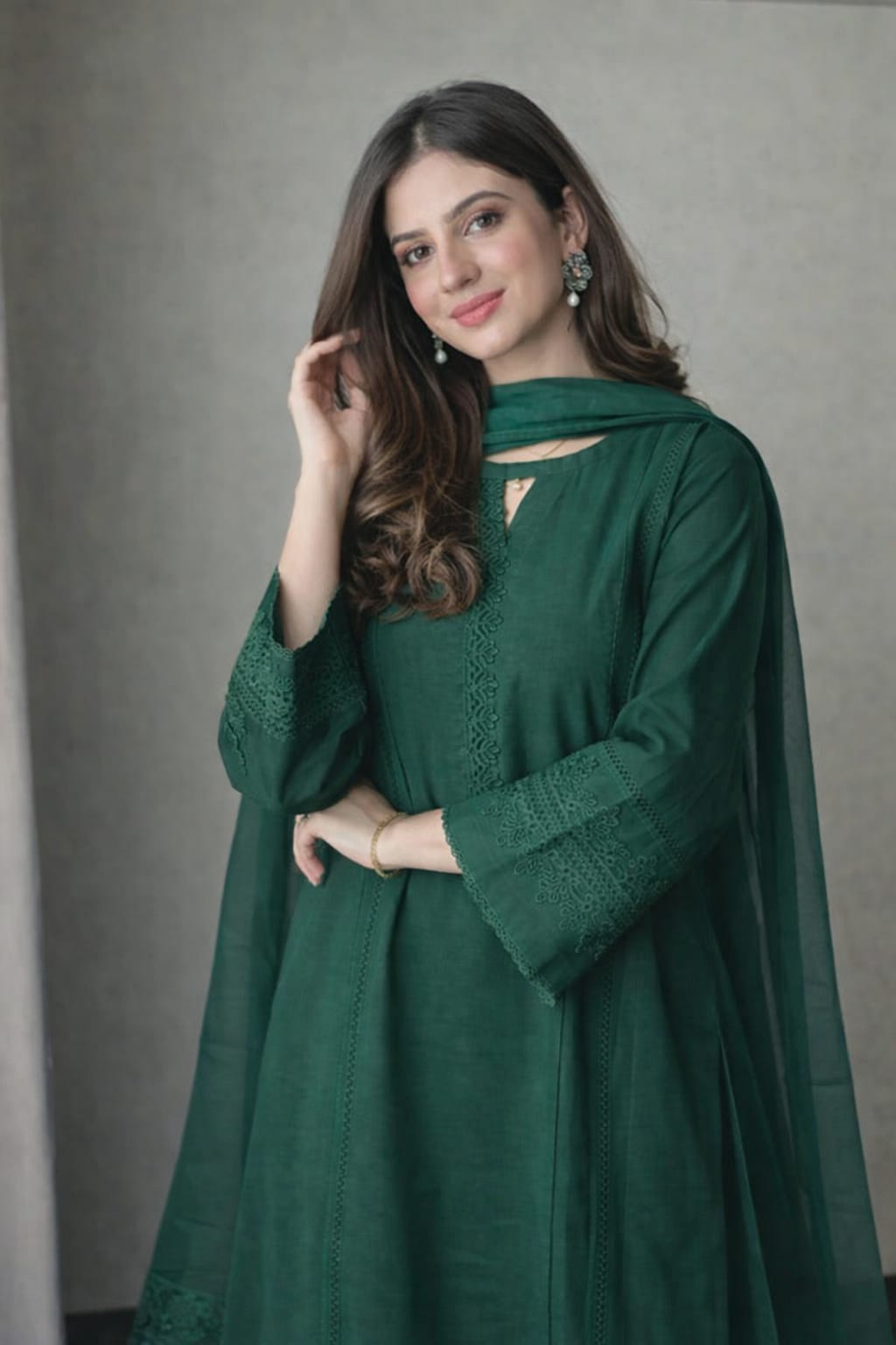 legant aur graceful emerald green suit with beautiful black embroidery detailing. Soft breathable fabric, comfortable...